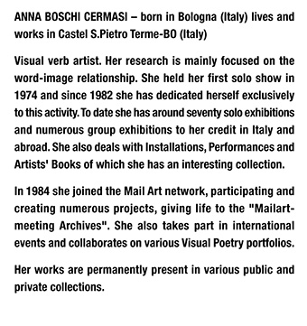 # 54 ANNA BOSCHI (ITALY) "Correspondences" Collages, drawings, visual poetry. February 2011, 40 pages € 15 / $ 20 / 13 UK St. |